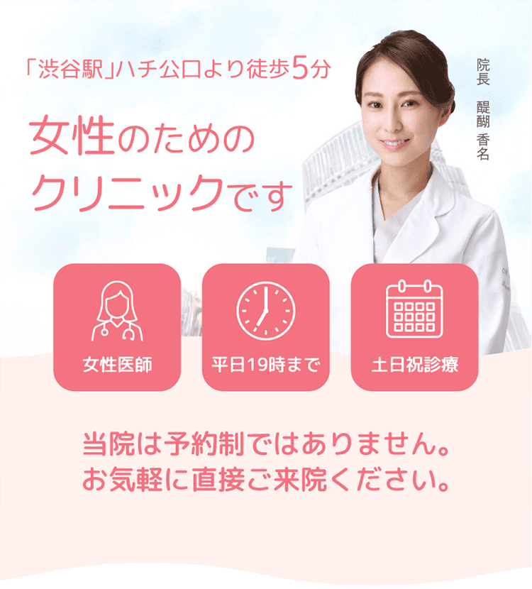 女医も多数在籍、土曜・日曜・祝日も診療しております。休診日にお急ぎの場合は本院の池袋クリニックにて対応いたしますのでご相談ください。